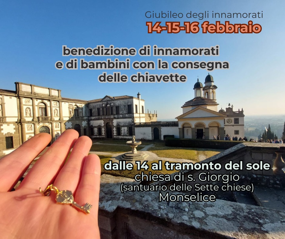 Benedizione degli innamorati e dei bambini con la consegna delle tradizionali chiavette. 14, 15, 16 febbraio 2025, dalle 14:00 al tramonto del sole. Sabato 15 febbraio ritrovo alle 15.30 alla Porta Romana, pellegrinaggio giubilare degli innamorati e alle 16 inaugurazione delle vetrate restaurate e del nuovo impianto di illuminazione a San Giorgio.